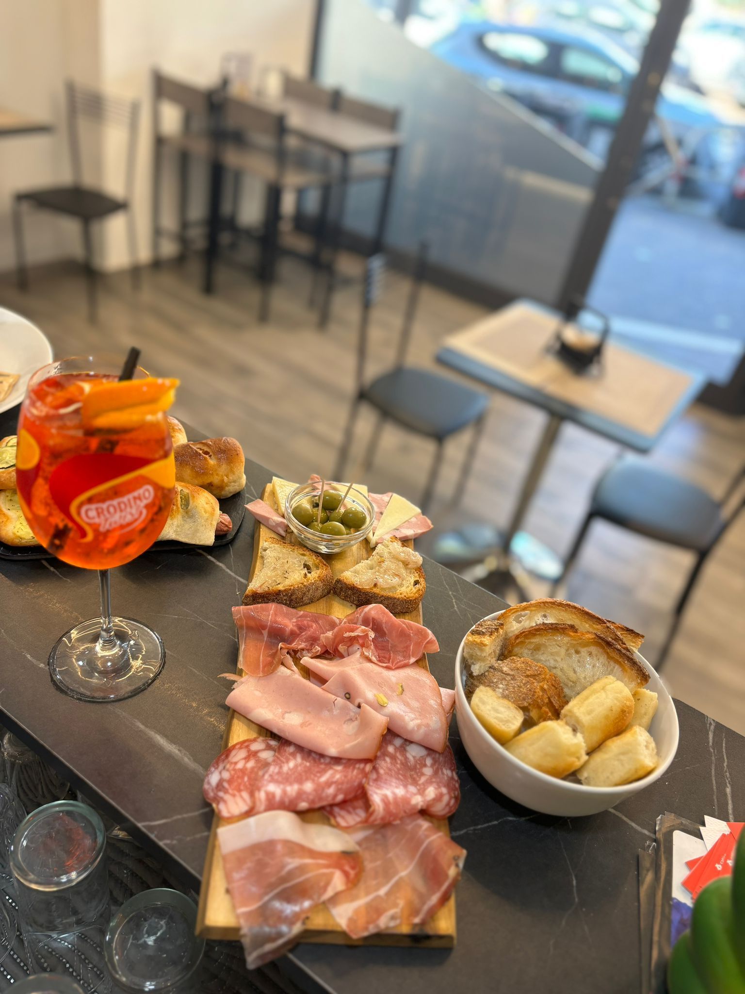 Completando l'esperienza culinaria, la nostra selezione di bevande comprende Spritz, Prosecco e birra artigianale, per sollevare il bicchiere e brindare a un momento di convivialità e gioia con gli amici.